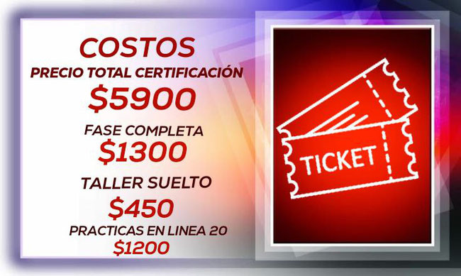 Solo te recordamos que para completar la certificación tienes que tomar todos los talleres y cumplir con tus horas de prácticas para poder hacer examen práctico y teórico.